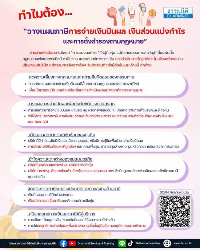 ทำไมต้อง...“วางแผนภาษีการจ่ายเงินปันผล เงินส่วนแบ่งกำไร และการตั้งสำรองตามกฎหมาย”