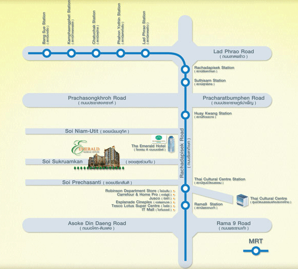 รถไฟฟ้าใต้ดิน MRT สถานีห้วยขวาง ทางออกที่ 3 (เดิน 400 เมตร)