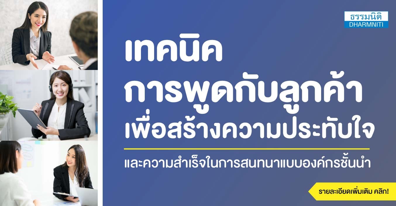 เทคนิคการพูดกับลูกค้าเพื่อสร้างความประทับใจและความสำเร็จในการสนทนาแบบองค์กรชั้นนำ (จัดอบรมออนไลน์ผ่าน ZOOM)