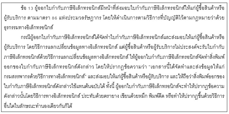 ดังนั้นจากแนวทางที่กฎหมายกำหนดพบว่า สามารถนำส่งในรูปแบบอีเมลได้ครับ แต่ถ้าหากไม่สะดวกก็สามารถพิมพ์เอกสารออกมาเพื่อส่งมอบได้เช่นเดียวกัน โดยให้มีข้อความ “เอกสารนี้ได้จัดทำและส่งข้อมูลให้แก่กรมสรรพากรด้วยวิธีการทางอิเล็กทรอนิกส์” ปรากฏในเอกสาร ซึ่งจากประสบการณ์ตรงของผมอยากบอกนักบัญชีเหลือเกินว่า ถ้ายินยอมรับผ่านอีเมลได้จะดีมาก ๆ เพราะจะไม่ต้องเปลืองต้นทุนและเวลาในการพิมพ์เอกสารเพื่อจัดส่ง อีกทั้งหากต้องการใช้งานรูปแบบกระดาษจริง ๆ ทางผู้รับก็สามารถพิมพ์เอกสารออกมาเพื่อใช้งานได้เลย เพราะถือว่าใบกำกับภาษีดังกล่าวได้ส่งมอบแล้ว