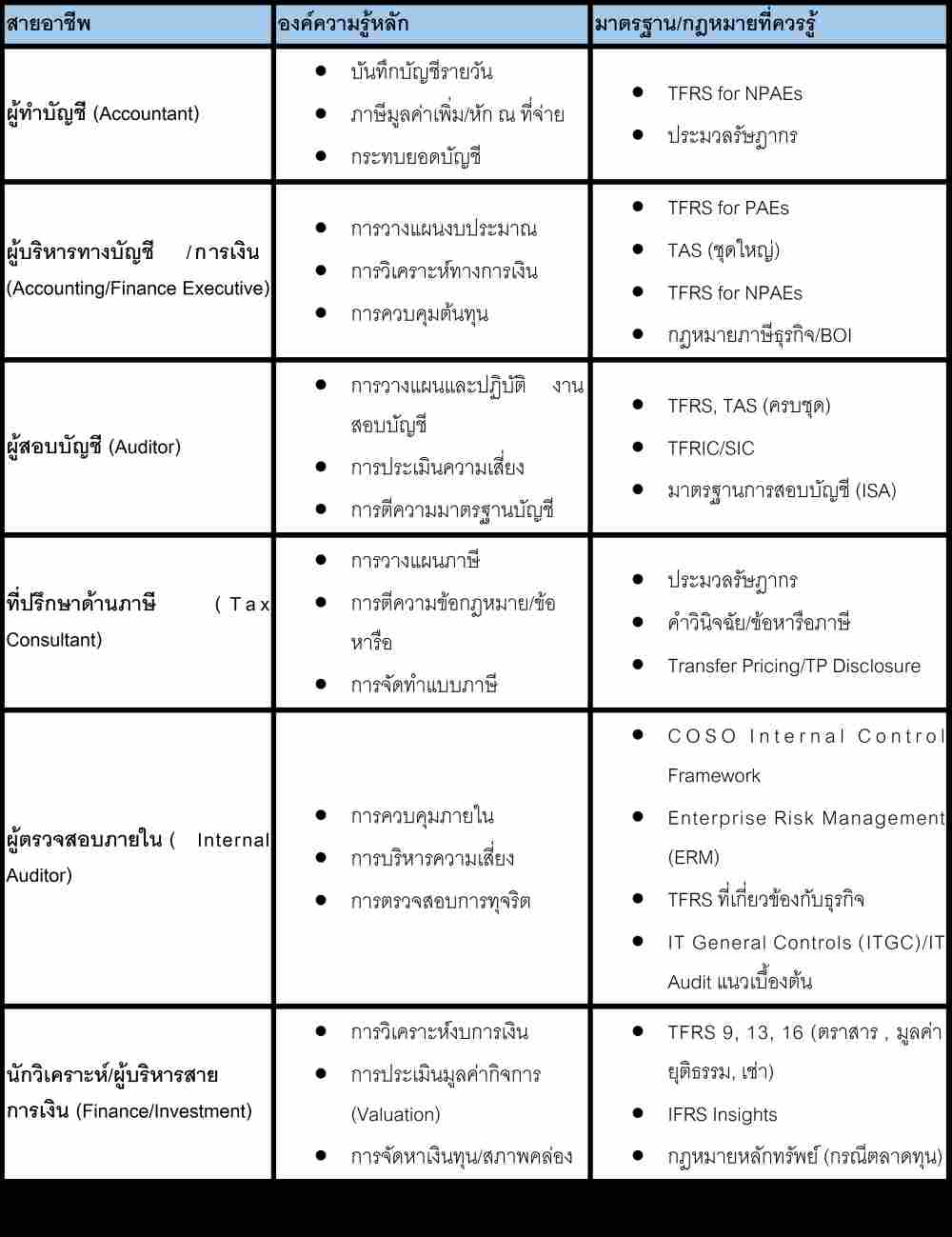 องค์ความรู้และมาตรฐานที่ควรรู้ตามสายอาชีพทางบัญชี