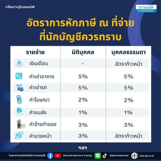 อัตราการหักภาษี ณ ที่จ่าย ที่นักบัญชีควรทราบ